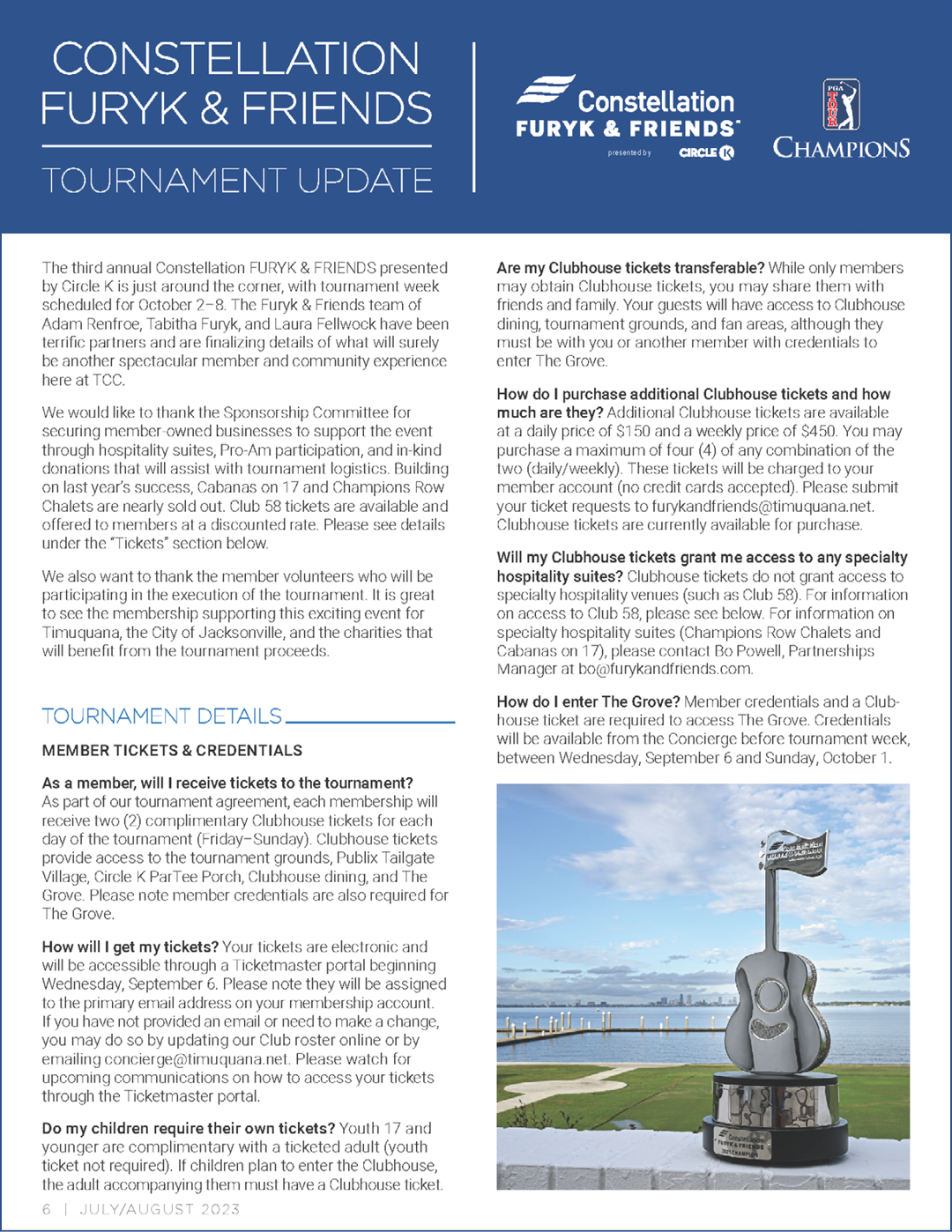 Member Information Spread for the Constellation FURYK & FRIENDS Charity Tournament